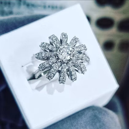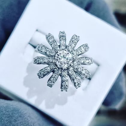& Free ShippingA unique cluster ring design that features a diamond set fanned dome mount that displays acentre set 0.50ct round cut diamond.